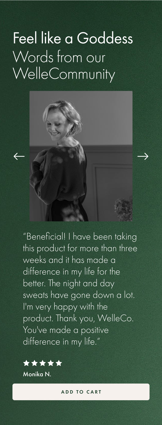 “Two capsules each day of this science-led hormonal support will help you to awaken your inner goddess to embrace this creative, vibrant, powerful new chapter. Replenish your passion for life with this blend of red clover, agnus castus and Siberian ginseng, while supporting a healthy mood balance and your nervous system. Take two capsules daily to enjoy the vibrant, fulfilling life you long for.”
