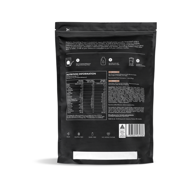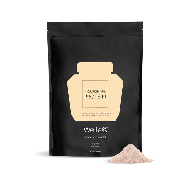 Created to help support muscle recovery, alleviate bloating and enhance energy levels, WelleCo's vegan Nourishing Protein powder is formulated from gluten-free, non-GMO ingredients and infused with pre and probiotics, herbal extracts, vitamins and minerals for complete nourishment. This delicious vegan protein provides all 9 essential amino acids required for post-workout recovery and also helps balance blood sugar levels making it the perfect afternoon pick-me-up.