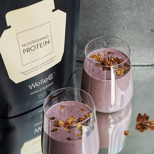 Created to help support muscle recovery, alleviate bloating and enhance energy levels, WelleCo's vegan Nourishing Protein powder is formulated from gluten-free, non-GMO ingredients and infused with pre and probiotics, herbal extracts, vitamins and minerals for complete nourishment. This delicious vegan protein provides all 9 essential amino acids required for post-workout recovery and also helps balance blood sugar levels making it the perfect afternoon pick-me-up.